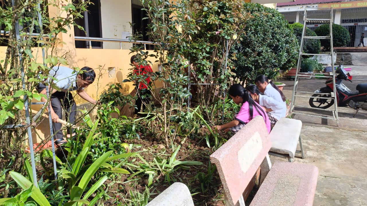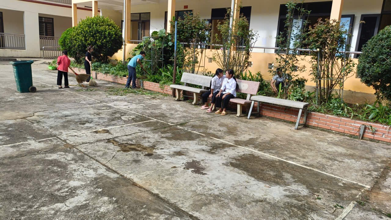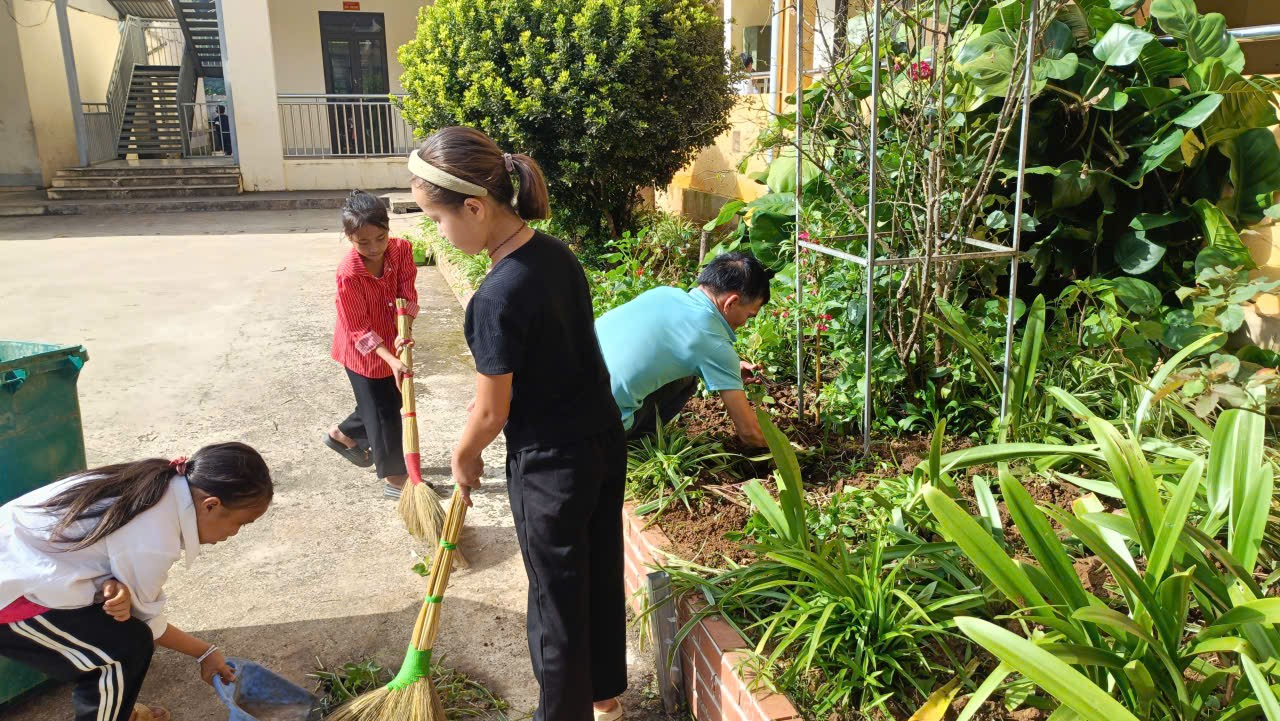 Ngay từ sáng sớm, các em học sinh đã cùng thầy cô giáo tích cực tham gia buổi tổng vệ sinh khuôn viên trường lớp. Từng nhóm học sinh hăng hái quét dọn sân trường, lau chùi bàn ghế, trang trí lớp học, trồng thêm hoa, chăm sóc bồn cây… Mỗi người một việc nhưng tất cả đều làm việc trong tinh thần đoàn kết, vui vẻ, với mong muốn tạo nên một môi trường học tập thật sạch đẹp, khang trang để chào đón năm học mới.